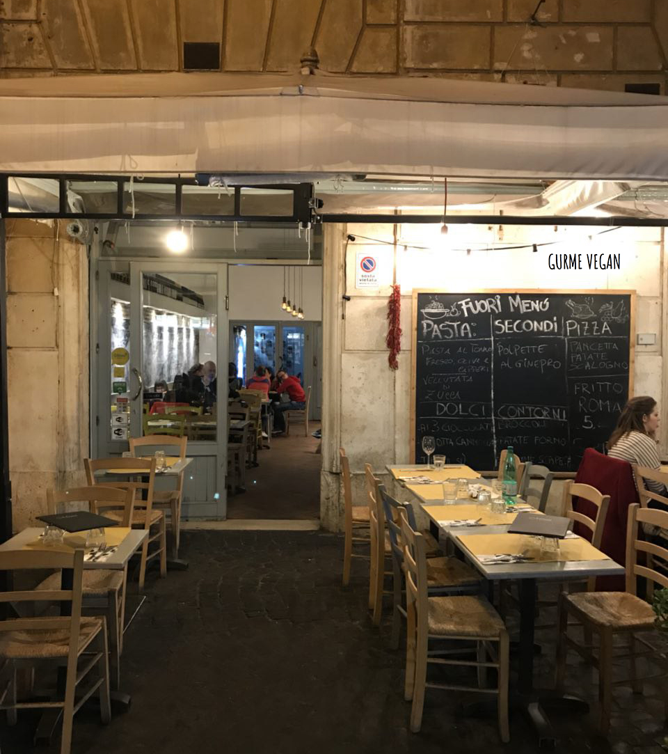 So What is a %100 vegan restaurant in Rome. Restaurant’s location away from the tourist spots allows you to experience what the real urban Roman is today. Food is good, not gourmet but definetely good, most of all it is not pretentious as many others places.